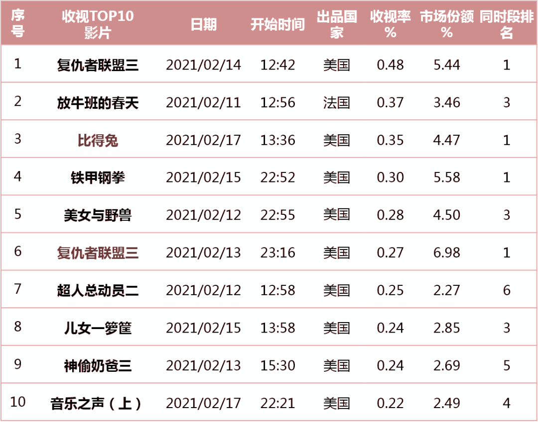 電影頻道春節(jié)檔外片時(shí)段大片云集,有五部收獲同時(shí)段收視第一。其中,《復(fù)仇者聯(lián)盟三》以5.44%的收視份額高居全年白天時(shí)段收視第五位,外片白天時(shí)段第一位。此外,2月13日少兒影院播出的日番《工作細(xì)胞》更是在頻頻登上微博熱搜,昭示著電影頻道走向年輕化道路的決心,受到輿論強(qiáng)烈關(guān)注。